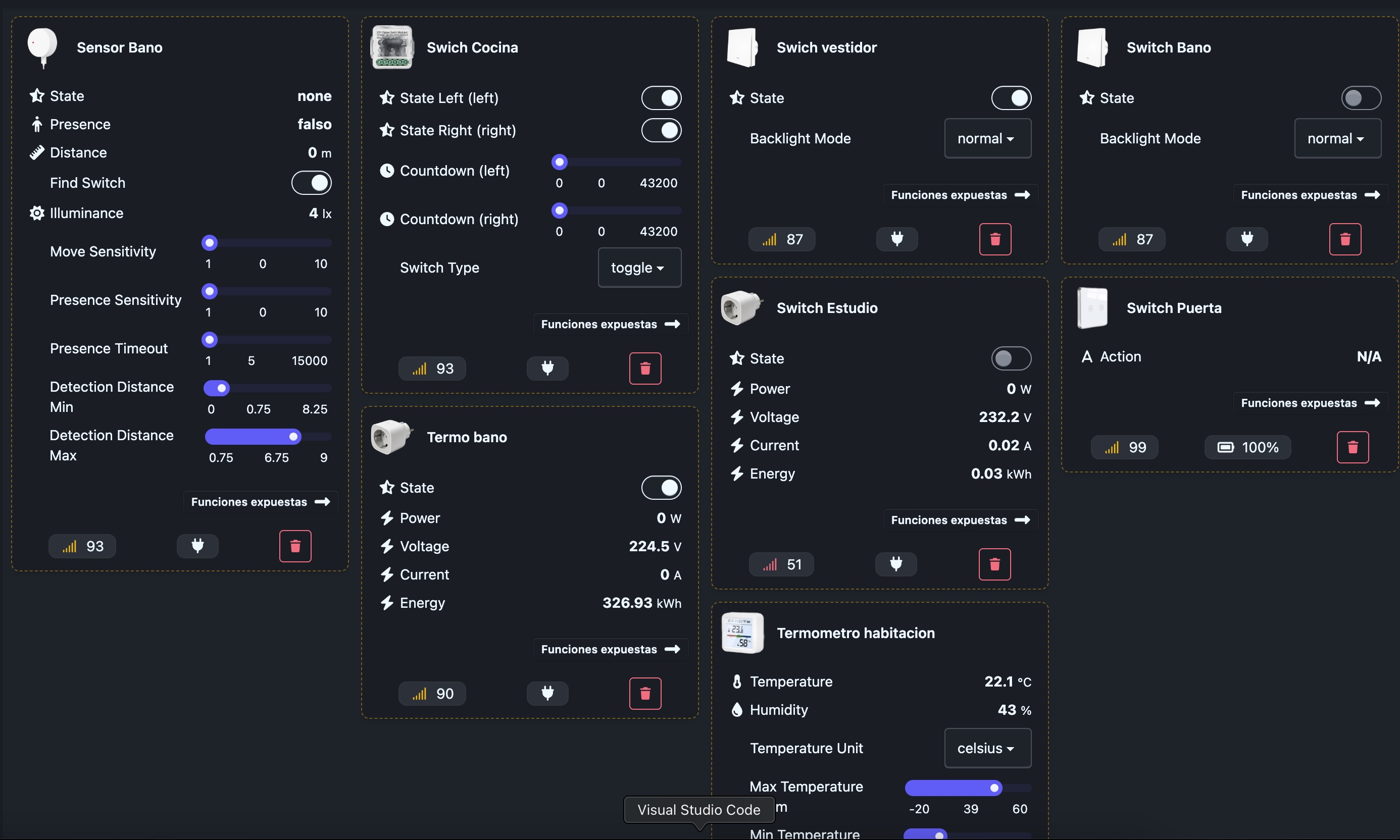 Control y monitoreo de switches inteligentes, sensores de temperatura, humedad, consumo energético y más